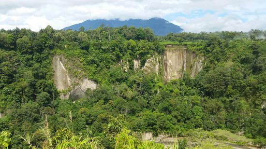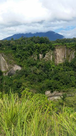 Weiter gehts zum Sianok Canyon. Wir stellen die Bikes ab und gehen über einen kleinen Friedhof zu einem wundervollen Aussichtspunkt. Die durch vulkanische Aktivitäten geformten Felswände sind atemberaubend. Im Hintergrund sehen wir den Marapi (2891m) und den Singgalang (2877m).