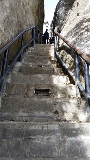 Eki und Sidi warten mit unserem Gepäck in einem Restaurant und wir gehen etwas durch das schöne Tal und dann die etwa 500 Stufen der "chinesischen Mauer" hinauf.