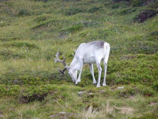 Nach dem Auschecken beim Hotel habe ich mich auf den Tiger gesetzt und die etwas mehr als 200 km unter die Räder genommen und gegen 13.45 Uhr war ich dann am Nordkapp!! . Ja, ich habe es tatsächlich geschafft. Aber das Nordkapp war ja nicht das Ziel meiner Reise. Denn das Ziel ist ja der Weg (bzw. umgekehrt). Aber ich hatte natürlich trotzdem grosse Freude, den nördlichsten Punkt des europäischen Festlandes erreicht zu haben. In vielen Büchern und Internet-Foren wird geschrieben, dass sich die Reise nicht lohnt. Ich finde es lohnt sich aber definitiv. Zwar ist das Kapp "einfach der nördlichste Punkt". Ansonsten nicht unglaublich imposant. Aber die Strecke dorthin hat mir doch recht gut gefallen. Es war total anders als bisherige Routen in Norwegen. Man konnte bequem mit 100 bis 120 km/h fahren. Teilweise war der Strassenbelag nicht sonderlich gut und vor allem: Auf die vielen Renntiere und Elche musste man aufpassen. Ja, tatsächlich. Hier waren nun diese Tiere. Einmal ist eine ganze Kolonie von etwa 20 Tieren nur etwa 2 Meter vor mir über die Strasse gerannt. Ja, da muss die Hand dauernd auf Bremsbereitschaft sein.