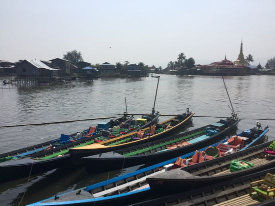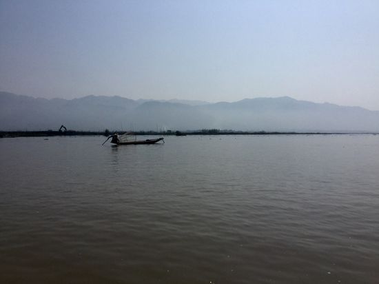 Im Anschluss an unsere anstrengende und aufregende Trekkingtour durch die Berge gönnten wir uns noch 2 Tage Ruhe und reisten dann wieder in den Süden Myanmars nach Njaung Shwe. Die Busfahrt über Nacht war diesmal leider nicht wirklich erträglich, da unser Fahrer die kalte Luft bevorzugte und die Klimaanlage deswegen mal wieder auf Hochtouren lief. Neben uns saß eine Frau, die während der kompletten Fahrt ihr neugeborenes Baby auf dem Arm hatte - 13 ganze Stunden. Wenn wir also nicht von der Kälte geweckt wurden, dann vom Weinen und Schreien. Nach der Ankunft verbrachten wir dann erstmal den halben Tag im Hotel und holten unseren Schlaf nach. Später schlenderten wir dann durch das kleine Örtchen, was nur 5 km vom bekannten Inle See entfernt ist. Unterwegs wurden wir dann im Minutentakt von den zahlreichen Bootsbesitzern angesprochen, die uns ihre Touren schmackhaft machen wollten. Unbeirrt liefen wir zunächst weiter auf der Suche nach einem guten Restaurant, bis eine zierliche Frau das Schlagwort "sunset" herausbrachte, was bei Vincent IMMER zieht. Ganz egal, wie der Ausflug beschrieben und angepriesen wird, fällt der Begriff "Sonnenuntergang", ist Vinni auf jeden Fall dabei Wir vereinbarten also ein paar Details und verabredeten uns für den nächsten Vormittag. Pünktlich 10:30 Uhr ging es dann tagsdarauf los. Die ersten Kilometer legten wir auf einem Kanal zurück. Hier war das Wasser noch sehr dreckig und braun gefärbt. Doch dann eröffnete sich vor uns der zweitgrößte See des Landes und das Wasser wurde zunehmend klarer. Das erste Highlight, was wir dann gleich entdecken konnten, waren die sogenannten Einbeinruderer. Mit einem äußerst ausgeprägtem Gleichgewichtssinn stehen sie an einem Ende ihres schmalen Bootes und paddeln sich über das Gewässer. Da sie jedoch beide Hände für den Fischfang frei haben müssen, halten sie das Ruder mit einem Bein fest. Haben sie dann einen günstigen Standort erreicht, schnappen sie sich ihren großen Korb und stellen ihn in das Wasser. Dabei geschieht alles mit einer wahnsinnigen Leichtigkeit ... wirklich bemerkenswert!