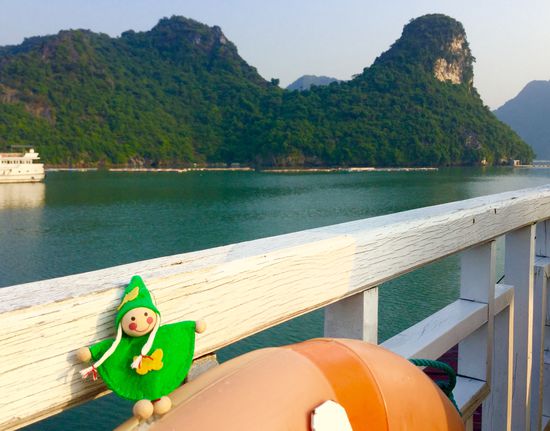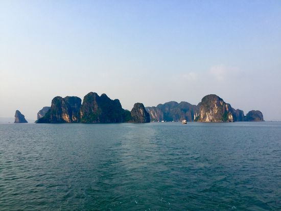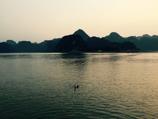 Nach unserem Aufenthalt in Sapa ging es für eine Nacht wieder zurück nach Hanoi und anschließend nach Halong City. Die Fahrt dauerte zwar verhältnismäßig nicht so lange, war aber aufgrund der Hitze und der vielen Leute im Bus doch ziemlich anstrengend. Am Nachmittag suchten wir uns erst ein Hostel und ruhten uns dann am Strand aus. Immerhin hatten wir für die folgenden Tage eine Tour gebucht, für die wir alle Kräfte brauchten. Mit einem Boot ging es direkt in die Halong Bay. Nach dem Mittagessen führen wir mit einem anderen kleineren Boot zu einer der knapp 2000 Inseln, die zu der Bucht gehören. Dort stiegen wir in eine Tropfsteinhöhle ein. Zunächst waren wir von den Steinformationen total beeindruckt, doch je länger wir uns darin aufhielten, desto lauter und unruhiger würde es. Schließlich waren wir bei weitem nicht die Einzigen dort und das ganze Spektakel erinnerte doch eher an eine Massenabfertigung von neugierigen Touristen. Trotzdem hat es uns am Ende ganz gut gefallen. Als wir auf unserem großen Boot wieder ankamen ging es sofort wieder vom Boot runter. Diesmal aber im Bikini und in Badehose und bei Sonnenuntergang. Geschätzte 7 oder 8 Meter tief war der Sprung vom Deck. Vincent war natürlich mehrmals dabei. Ich konnte mich nicht ganz dazu hinreißen lassen ... Eine Etage weiter unten habe ich mich dann aber auch getraut