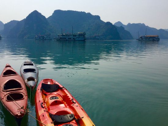 Genaus so aufregend ging es dann heute morgen weiter. Gleich nach dem Frühstück warteten die Kajaks schon auf uns. Eine halbe Stunde könnten wir auf eigene Faust die Halong Bucht erkunden. Im Anschluss daran führen wir nach Cat Ba Island, die größte der Halong Inseln. Dort besuchten wir den Nationalpark und kletterten auf einen Berg, von wo aus wir die ganze Insel überblicken konnten .... Der absolute Wahnsinn !!!