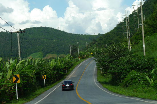 Heute werden wir viele Stunden im Auto sitzen. Das behagt zwar nicht allen, vor allem der Jüngsten nicht, aber mit iPod, Spielen mit Grosi und Schlafen gehen auch die 400 km vorbei. Wir fahren am Morgen nach einem typisch thailändischen Frühstück (Reissuppe, Eier, Toast, süsser Brotaufstrich, Gemüse, Tee) in Lamphun noch im Nebel ab - je weiter östlich wir kommen, desto mehr reisst der Himmel auf. Bald scheint über uns die Sonne vom stahlblauen Himmel, und wir sind einmal mehr sehr froh über die funktionierende Klimaanlage im SUV!