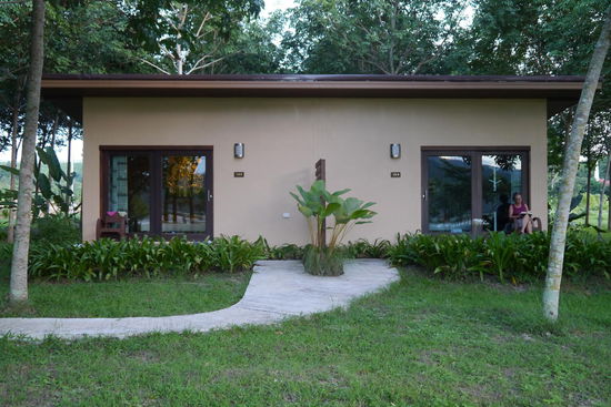 Nach einer abwechslungsreichen Fahrt abseits der Touristenpfade durch die Hügel, z. T. auf unbefestigter Strasse, kommen wir wieder in die Zivilisation und fahren bis nach Lamphun. Dort finden wir das "Grand Jamuree Resort" nur mit Hilfe eines Einheimischen. Es liegt ausserhalb der Stadt inmitten von Reisfeldern. Es ist mit dem eigenen Auto sehr gut erreichbar, mit den ÖV jedoch nur bedingt empfehlenswert. Der Empfang ist nicht gerade verheissungsvoll - niemand ist da. Es dauert eine Weile, bis ein junger Mann, der nur knapp englisch spricht, erscheint, der uns dann die hübschen Bungalows entlang des kleinen Sees zeigt. Wir bleiben! Sonst scheint es kaum Gäste zu haben, ausser einer Hochzeitsgesellschaft, die im Hauptgebäude ihr Fest feiert. Nach einer Weile sitzen wir zu sechst im schlecht beleuchteten Restaurant am See, die Ventilatoren auf Hochtouren eingeschaltet und die Bedienung eher schleppend. Was jedoch etwas verhaltend begonnen hat, gipfelt im besten Essen der ganzen Reise. Die Portionen sind riesig, und alles schmeckt einfach himmlisch. Wenn wir gewusst hätten, dass der frische Bohnensalat, die frittierten Pouletteile, das Poulet mit Cashewnüssen, Fisch süss-sauer etc. so grosszügig bemessen ist, hätten wir nur die Hälfte bestellt. Mit übervollen Bäuchen gehen wir zu Bett. Ein wunderschöner, erlebnisreicher Tag geht zu Ende. Wir sind sehr dankbar!