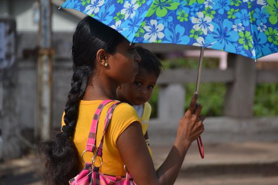 Am späten Nachmittag starten wir eine erste Erkundungstour ins ca. 8km entfernte Negombo...natürlich im Tuk Tuk (400 Sri-Lanka-Rupien (LKR)=ca. 2,80€)! Wenn man sich drauf einlässt, findet man überall interessante Ecken, den Bahnhof, ein Kino, die Menschen an der Bushaltestelle, den Erdnuss- und Snackverkäufer an der Ecke. Sie schauen uns an und wir sie, beobachten den leicht chaotischen Verkehr und am Ende finden wir eine Snackbar mit leckeren Fruchtshakes, wo wir auch die erste einheimische Kost versuchen - sehr lecker! Als wir in der Dämmerung gegen 19Uhr zurückfahren, passiert danach nicht mehr viel...es gilt den Schlafmangel der letzten Nacht aufzuholen - Gn8 Sri Lanka mit dem so unverkennbaren und vertrauten Jungle Sound auf der Terrasse und hunderten von Glühwürmchen bei 30Grad.