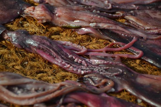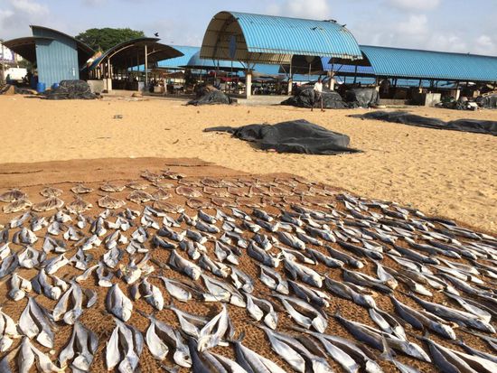 Gegen 14Uhr starten wir zur Besichtigung eines kleinen Tempels und danach lassen wir uns in der Stadt absetzen. Wir schlendern zum Fluss und zum Fischmarkt. Hier ist nicht viel los, es stinkt gewaltig, am Morgen soll hier erheblich mehr Trubel herrschen. Ein Einheimischer lernt grad seit 10 Monaten Deutsch und bringt uns ein paar Dinge seines Trockenfisch-Handwerks näher. 1 Tag einsalzen, 4 Tage Sonnentrocknen, dann hält sich der Fisch 3-4 Monate und wird auch ins Inland transportiert. Makrele, Thunfisch, Mantarochen, Sardinen, Oktopussies, alles dabei... ) Verdienst eines Fischtrockners im Auftrag seines Bosses liegt wohl bei 4€/Tag. Doch in 2 Monaten schließt er seinen Deutschkurs ab und dann kann er im Hotelgewerbe für das Doppelte pro Tag anfangen. Wir beobachten noch etwas die Fischer am Stand, auch hier leben einige Arme in sehr einfachen Hütten. Nett sind sie jedenfalls Alle und beobachten uns gern. Matteo wird von einer Welle erwischt und ist nun nass bis zur Hüfte... ;o) Zum Abend gibt es auf Wunsch Pizza und danach geht es per Tuk Tuk wieder zurück in unser 10min vom Ort/Meer entferntes Hotel im Grünen. Eis und ein längeres, wildes Bad im Pool runden den Tag ab. Ab 21Uhr Sound und Bier auf der Terrasse... ;o)