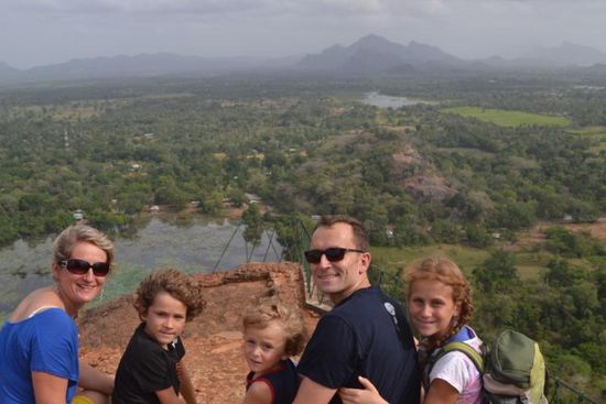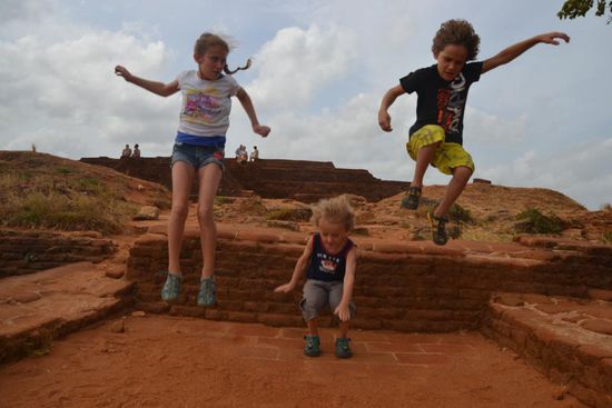 Vor 9Uhr schaffen wir es bislang nicht zum Frühstück . Lecker frisches Obst, Omlette und Ceylon Tea auch hier. Von der Gastgeberfamilie erfahren wir allerhand Dinge über die Gegend und ihr Leben hier. Schulferien alle 4 Monate einen Monat lang, 20km Schulweg täglich (einfach), Elefanten ab und an auf dem Grundstück, weil doch die Bananen so lecker sind ;o)... Wir chillen den Vormittag auf der Terrasse, genießen den heftigen Wind, der die Wärme erträglich macht. Gegen 13Uhr geht es los zum Weltkulturerbe Sigiriya - etwa 15 Gehminuten entfernt. Doch zuerst schauen wir uns noch die über 30m hohe Buddha Statue in der benachbarten Tempelanlage an. Der Parkplatz und angrenzende Markt wirken wie ausgestorben, das liegt aber wohl an der Tageszeit. Die Massen kommen eher früh oder abends hier her. Selbst an der Kasse stehen nur 2 Leute vor uns. Dafür ist es wie angekündigt unverschämt teuer - 28€ Eintritt p.P.! Die Anlage selbst ist im Vergeich zu den historischen Anlage in SO-Asien in sehr gutem Zustand. Hier arbeiten wohl 800 Leute daran, dies zu pflegen und zu erhalten. Der Felsen selbst ist ein aus der Landschaft ragender Felspilz, welcher im 5. Jhd. zu einem festungsartigen Königspalast ausgebaut wurde. Hintergrund waren Intrigen in der Königsfamilie, die ganze Geschichte hier zu erwähnen wäre zu lang... ;o) Es geht vorbei an Wasseranlagen näher an den Felsen heran. Hier warten schon die Privatführer, welche die Touristen weiter schröpfen wollen und auch Hand anlegen, um Jene auf das Dach des Felsens zu schieben und zu ziehen... Erstes Highlight sind die weltberühmten Fresken der Wolkenmädchen von Sigiriya, welche in einer ca. 25m hohen Höhle im Felsen seit über 1500 Jahren existieren. Aufstieg in einer schmalen, luftigen Wendeltreppe, welche besonders Nevio aufgrund Höhenangst zu Schaffen macht. Später geht es zum Löwentor, welches den Eingang zum Königspalast auf dem Dach des Felsens darstellt. Hierzu muss man nun noch ein paar Leitern erklimmen und eine Traverse führt zum Gipfel hinauf. Oben dann spektakuläre Aussicht in alle Richtungen. Flache Ebenen, ein paar Seen, Berge, alte Mauern und wilde Affen, welche verwöhnt von Touristen nach Essbarem Ausschau halten und nicht zuletzt Maya an den Rucksack springen, weil da leeres Snackpapier zu sehen ist. Viele Fotos entstehen und wir freuen uns über den Ausblick ins weite Land. Der Abstieg gestaltet sich entgegen den aufkommenden Massen recht einfach und wir schlendern sehr entspannt zu unserer Unterkunft. Gegen 17:30Uhr sind wir zurück, verbringen einen schönen Abend, schlemmen leckeres Sri Lankan Chicken Curry mit Reis. Nevio freundet sich mit den beiden Söhnen der Familie an, beim gemeinsamen UNO bzw. auf dem Laptop spielen verständigt man sich mit Händen und Füßen...
