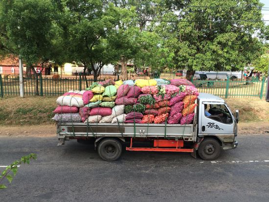Der local bus nach Kurunegala ist noch nicht sehr voll, unser Gepäck wird direkt hinter dem Fahrer platziert. Die Busfahrer agieren hier wie Marktschreier. Um 12:30Uhr ist Abfahrt...100m...dann steht alles. Die Busbahnhofausfahrt ist total verstopft. Es dauert erst mal 15min, dann geht es Stop and Go langsam durch die Vororte. Den Kindern und Anja bekommt das nicht so gut, aber bald machen sie alle ein Schläfchen. Es wird ländlicher und die Fahrt flüssiger, alles begleitet von dudeliger, lautstarker indischer Musik. Ich speichere die vielen Eindrücke vor dem Busfenster... Irgendwann kommen wir in einer belebten Straße in Kurunegala an und gehen direkt zum Busbahnhof. Hier hupt es permanent und die Bus-Marktschreier sind lautstark aktiv. In dem ganzen Chaos versuche ich einen Menschen zu finden, der uns den korrekten Bus für die Weiterfahrt nach Dambulla zeigt. Ansonsten werden wir wieder neugierig beäugt... ;o) Bus gefunden und Gepäck im Kofferraum verstaut. Da die Klappe defekt ist, muss es halt eine alte Plasteflasche - zwischen Klappe und Stoßstange geklemmt - richten -, passt schon. Auch diese Fahrt wird recht abenteuerlich. An einer Fernstraßen-Baustelle stehen wir über 30min, im vollen Bus ohne AC ist das recht warm. Die eingebüßte Zeit versucht der Fahrer dann Sekunde um Sekunde auf der Weiterfahrt wieder mit teils abenteuerlichen Überholmanövern herauszuholen. Dabei ist die Hupe das wohl wichtigste Hilfsmittel...ein Fahrzeug würde hier noch eher mit nur 2 Rädern vorwärts kommen als ohne Hupe! Aus- und Einsteigen funktioniert per Ab- und Aufspringen, der Busgang steht teilweise komplett voll und manchmal hängen die Leute noch außen an der offenen Bustür dran, um mitzukommen. Auch diese Fahrt geht zu Ende... - Ergo: 3h für 58km. Gegen 18:30Uhr kippt uns der Bus irgendwo in Dambulla ab... kein Bus zur Weiterfahrt in Sicht, es ist wohl zu spät. Wir müssen aber noch 20km bis Sigiriya - zur gestern erst gebuchten Unterkunft. Also nicht lange überlegen, es wird schon dunkel und damit gefährlicher auf den Straßen. Ein Tuk Tuk samt Gepäck ist dann doch zu wenig und so geht es im Zweier-Konvoi nach Sigiriya. Der Fahrer fährt im Elephant Corridor sogar etwas langsamer, denn hier kreuzen nach 18Uhr des öfteren die wilden Kumpels die Straße - dangerous. Gegen 19:30Uhr kommen wir in der Singhagiri Villa an und beziehen unser aufgebettetes Zimmer. Feeling wie in der Savanne, sehr nette Gastgeberfamilie, Essen bestellen - erster Eindruck: hier fühlen wir uns wohl!