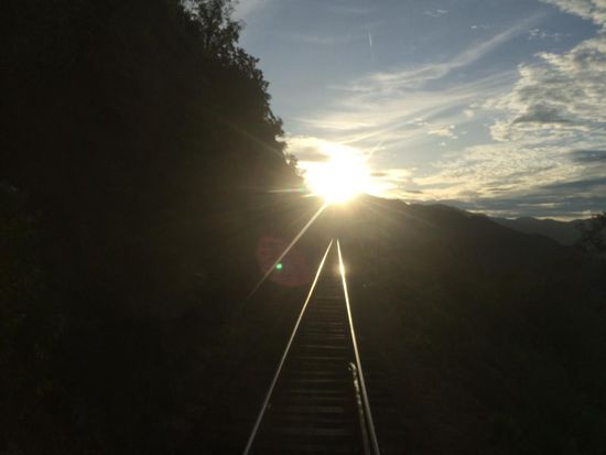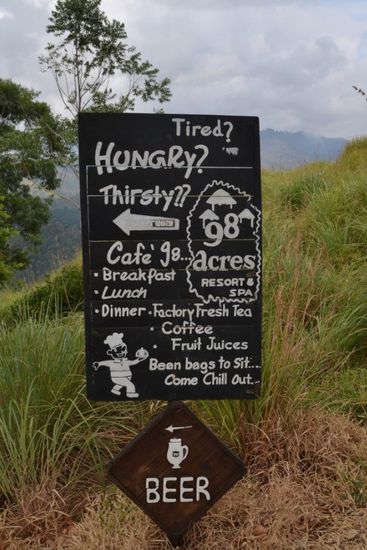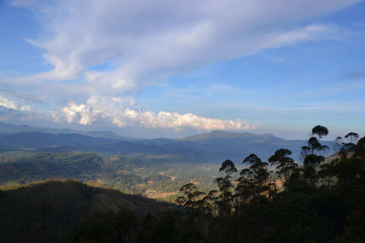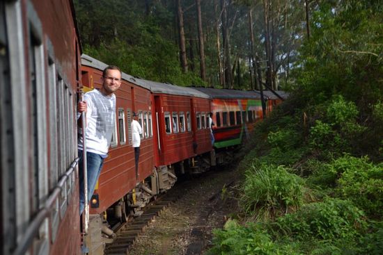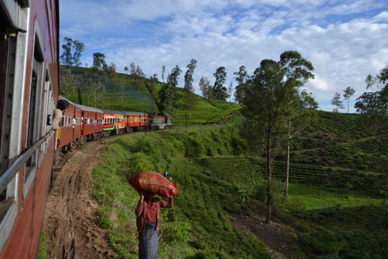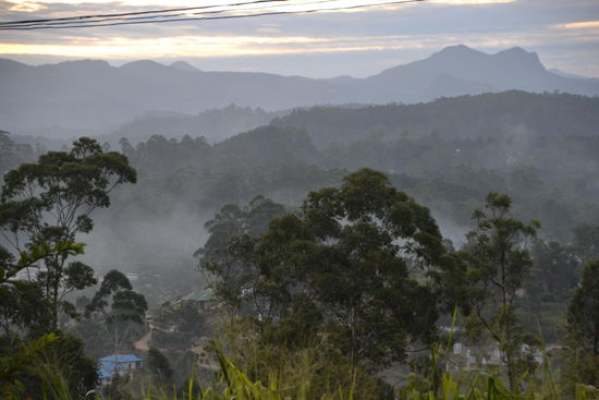 Heute haben wir 1. KLasse für den 2,5fachen Preis gebucht - im Observation Train. Dieses Abteil ist spektakulär veraltet und heruntergekommen. Sitze und Lehnen kaputt, es stinkt nach Urin, die große Aussichtsscheibe am Ende des Zuges zerschlagen und verdreckt und angebliches AC ist gar nicht erst vorhanden. Dazu fährt man permanent rückwärts, um einen super Blick aus der tollen Scheibe zu haben... ;o) Egal, so können wir wieder eindrucksvolle Ausblicke und Motive aus dem seitlichen Zugfenster genießen, zudem fahren wir in den Sonnenuntergang. Streckenmäßig ist dies die schönste Fahrt, mit Brücken, Tunneln, dem höchsten Zug-Pass Sri Lankas. In Haputale hat man einen super Ausblick vom Bahnsteig Richtung Meer, da hier das Gebirge steil abbricht. Die ganze Fahrt unterhalten wir uns mit zwei netten Schweizern, die wir schon vor 2 Tagen im Train gesehen hatten. Gemeinsam steigen wir in Ella aus. Es ist inzwischen dunkel, der Zug hält auf dem Durchfahrtsgleis ohne Bahnsteig und so wuchten wir alles 1m tiefer ins Gleisbett und hinüber. Im Zug gibt es hier wie gesagt keinen Schaffner, sondern der Bahnhofsvorsteher sammelt beim Verlassen des Bahnsteigs die Fahrkarten ein - Endkontrolle quasi. Wir laufen Richtung Ella Zentrum, entscheiden uns nach geraumer Zeit schließlich doch für ein TukTuk, da wir unser Hotel Rock Side Inn in der Dunkelheit nicht finden. Selbst die Anfahrt dahin ist noch abenteuerlich, da die Unterkunft etwas außerhalb, abgelegen an einem steilen Hang, liegt. Tolles Zimmer mit großem Balkon und wunderschönem Bergblick.