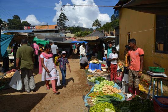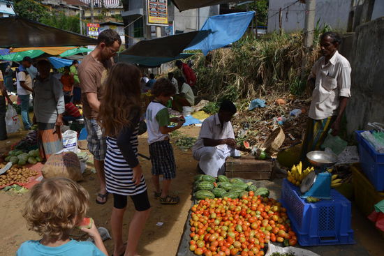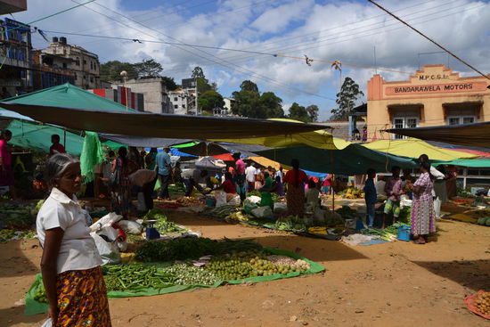 Der zweite Tag in Ella, wir relaxen, schreiben Karten,... Gegen Mittag starten wir mit dem Hausherren im local bus ins 12km entfernte Bandarawela. Dort ist heute Markt - ganz schön Hektik in der kleinen Stadt. Es zeigt sich mal wieder, dass aus einem planlosen Tag und einer einfachen Idee auch tolle Erlebnisse werden können. Wir begleiten ihn beim Obst- und Gemüseeinkauf, essen selber frisches Obst und sind als die einzigen Europäer natürlich der Hingucker hier... alle sind sehr freundlich. Das Umfeld des Marktes ist sicherlich nicht Jedermanns Sache, aber man muss sich einfach drauf einlassen. Tolle Fotos entstehen. Unser Hausherr ist ganz besorgt und hat immer Angst um uns. Als wir uns verabschieden (er fährt schon zurück, die Einkäufe werden zur Abendessenvorbereitung benötigt), warnt er nochmal, dass wir gut aufpassen sollen und wiederholt mehrmals, wie und wo wir zum richtigen Bus zurückfinden...;o) Wir schlendern noch eine Weile über den Markt und durch die City, essen etwas und fahren später zurück. Auch heute lassen wir die Bars und Restaurants im Ort aus...in unserer Unterkunft soll es Kokos-Curry geben... Der Abend verläuft gewohnt ruhig, Nevio hilft noch in der Küche bei der Essenvorbereitung mit. Es wird wie erwartet wieder sehr lecker...