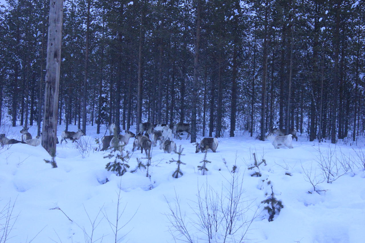 Nach einiger Zeit, ich weiß nicht mehr genau wo wir waren, schlief ich auf dem Beifahrersitz ein. Plötzlich weckte mich meine Freundin und hielt direkt an der Hauptstraße an. Bereits mehrere Fahrzeuge standen am Straßenrand. Nicht weit von der Straße entfernt, auf einer Lichtung, standen einige Rentiere. Zuerst sahen wir nur ein paar vereinzelte Tiere. Dann kamen immer mehr. Es war eine riesige Herde Rentiere! Wir waren gerührt. Es war ein so schöner Anblick. Sie waren gar nicht so weit von uns entfernt. Nach einiger Zeit in der wir und andere Schaulustige einfach da standen und beobachteten, verließen die Rentiere die Lichtung und verschwanden wieder im Wald.