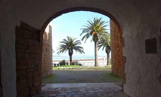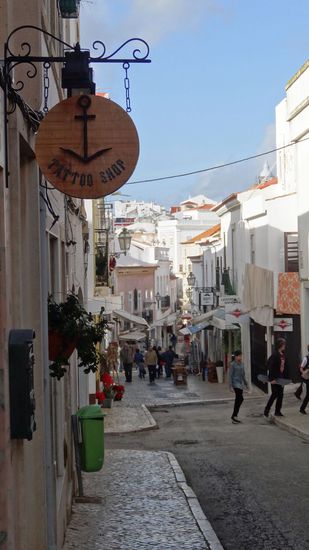 Zuerst parkten wir oberhalb des Forte da Ponta da Bandiera. Von dort hat man eine ausgezeichnete Sicht auf die Praia Batata und Meia Praia, die sich mehr als 5 km in Richtung Osten erstreckt. Gegenüber des Forts erblickt man die wuchtige mittelalterliche Stadtmauer, die die Häuser der hübschen Altstadt umgibt.