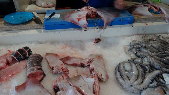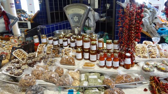 Die Markthalle sehr überschaubar, leider waren nur 2 Fischstände im Erdgeschoss und 2 Obststände in der ersten Etage geöffnet, das Restaurant auf dem Dachgeschoss hatte geschlossen - insgesamt ein wenig enttäuschend für uns, hatten wir uns grösser und geschäftiger vorgestellt, mag an der Jahreszeit liegen oder daran, dass wir schon einige Male auf grösseren und schöneren Märkten unterwegs waren?