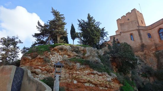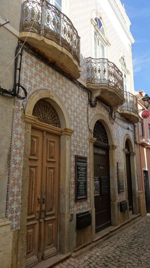 Von der nächsten Bucht aus, der Praia Grande, gute Sicht auf das Castillo der Stadt und zwischen den Felsen hindurch wieder mal auf Portimao.