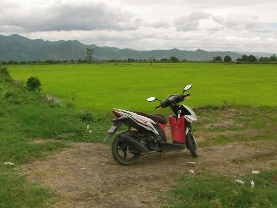 Zu Mittag wache ich auf und fühle mich super. Ich gehe etwas Essen und danach setze ich mich wieder aufs Moped. Hinter dem Stadtrand sind Berge zu sehen. Da will ich hin.
