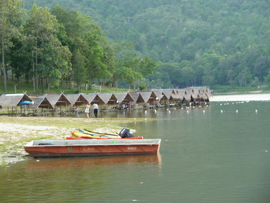Deshalb fahren wir ungebadet zu unserem zweiten Ziel dem Huay Tung Thao See, nicht weit vom Wasserfall entfernt. Das ist ein beliebtes Ausflugsziel der Thais und am Wochenende ist hier bestimmt die Hölle los. Am Ufer des Sees stehen viele kleine mit Matten ausgelegte Pavillons aus Bambus, wo man schattig sitzen, essen und trinken kann. Es gibt große und kleine aufgeblasene Autoreifenschläuche, die man zum Schwimmen ausleihen kann. Weil Ilka und mir die Auswahl auf der Speisekarte nicht zusagt, wollen wir nebenan bestellen, das wird uns aber verweigert, wir sollen da bestellen, wo wir sitzen. Also packen wir unsere Sachen zusammen und wollen ganz woanders hin? Leider fiel unsere erste Wahl wohl auf die Halsabschneiderbude, denn die knöpft uns für vier Bier 650 Baht ab und unfreundlich waren die auch noch.