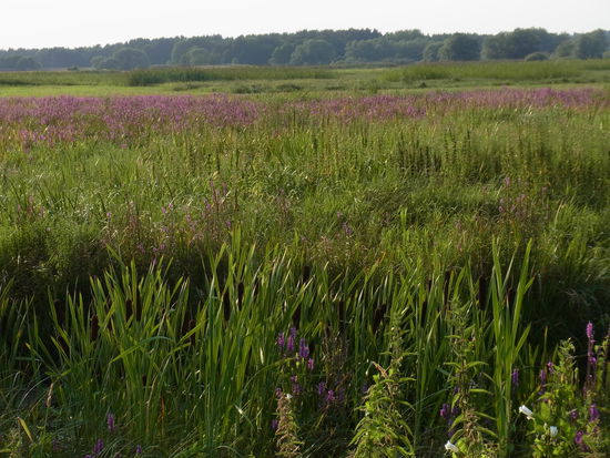 Zur eventuellen Beobachtung besteigen wir den hiesigen Biberbeobachtungsturm und haben tatsächlich Glück: erst raschelt es wie wild im Schilf und dann sehen wir einen im Wasser auf- und abtauchen.