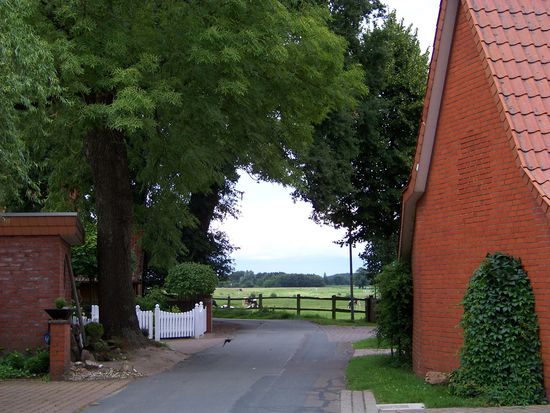 Der Weg schlängelt sich durch die abwechslungsreiche Landschaft entlang niedlicher Dörfchen mit Klinkerbauten.