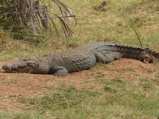 Immer wieder ein wunderbares Gefühl diese imposanten Dickhäuter von so Nahem zu sehen. Direkt am Fluss finden wir dann wieder Elefanten, genauso wie Impalas, Kronen Kraniche, Meerkatzen und riesige Krokodile ebenso wie Wasserböcke, Geierperlhühner und erneut Paviane.