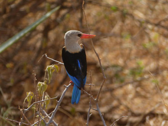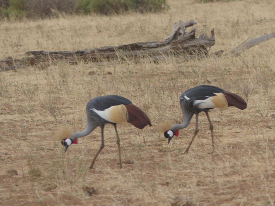 Weiter geht es durch die bizarre Landschaft des Buffalo Springs durch Herden von Giraffen, Zebras, Oryx usw. bis hinunter zum Fluss, wo wir zwei Sektretärvögel und einen Storch zu Gesicht bekommen!