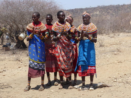 Wir werden von den singenden Samburu-frauen begrüßt, ehe wir in eine der Hütten eingeladen werden.