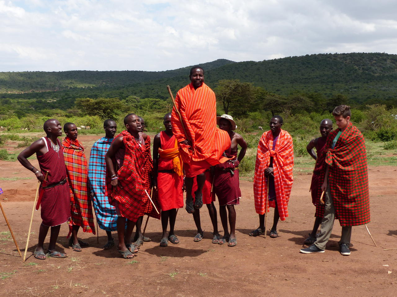 Nachdem wir mit einer Herde Ziegen das letzte Stück zum Dorf hinauf wandern, werden wir von den singenden, tanzenden und springenden Masai-Kriegern begrüßt.