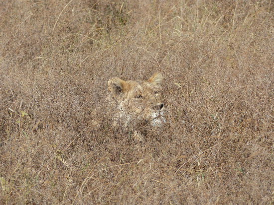 Dann folgen ein Kori Bustard, Büffel, Zebras und 3 Löwen, die versteckt im Gebüsch liegen.