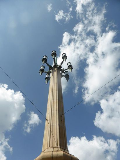 wie riesige Kandelaber zieren drei überdmensionale Laternen den Platz - irgendwie paßt die moderne Straßenbahn jedoch nicht ins Bild