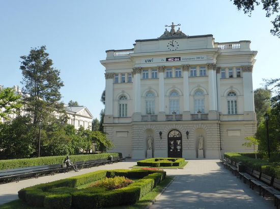 Gegenüber der Kirche ist das klassizistische Stazyc-Palais der Akademie der Wissenschaften mit dem davor stehenden Denkmal für Nikolaus Kopernikus.