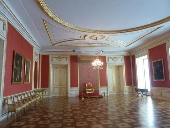 Der in Gold und rot strahlende Thronsaal geht auf Stanislaw August Poniatowski zurück der ihn bauen ließ. Der vergleichsweise kleine Saal ist mit der schönste Raum im Schloss.