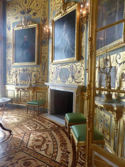Das königliche Schlafzimmer wurde 1775 fertiggestellt, wobei das Bett sehr klein wirkt, eher wie ein Sofa.