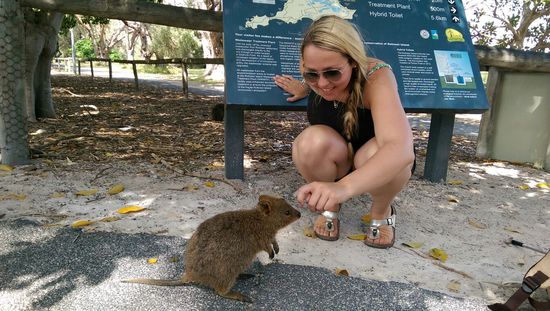 Ein süßer kleiner Quokka. Es gibt ganz viele von denen auf Rottnest Island. Sie haben immer ein Lächeln auf dem Gesicht.