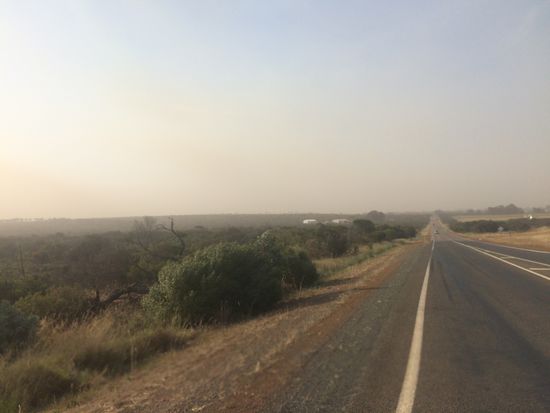 Der nächste Stopp war Norseman Circa 200 Kilometer von Esperance entfernt. Bevor wir losgefahren sind haben wir sehr große Rauchschwaden gesehen, sodass sogar die Sonne total vernebelt war.