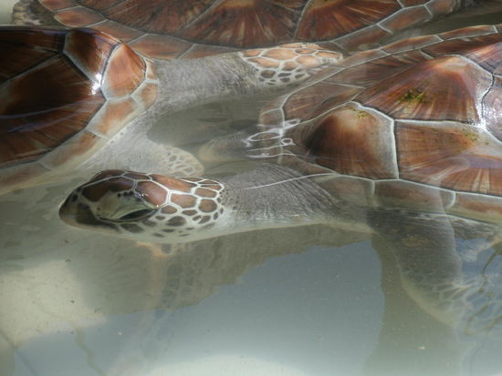 Danach hatten wir uns schon auf den Besuch der Turtle Aufzucht-Station gefreut, allerdings waren wir recht überrascht, als wir bemerkt haben, dass es Schildkröten jeden Alters dort gab und diese auch in viel zu kleinen Beton-Becken gehalten werden. Empfangen wurden wir von einem überdrehten Balinesen, der uns kreischend durch den Ort führte, der plötzlich auch "Turtle Park" hiess. Also keine Rede mehr von Rettung oder Wiederauswilderung. Der Verdacht drängt sich auf, dass dort Schildkröten gefangen werden, um sie für die Touristen zu halten. Besucht diesen Ort lieber nicht, insgesamt war es doch eher eine sehr traurige Veranstaltung. Allerdings soll es zwei von diesen Schildkrötenfarmen geben, eine per Auto zu erreichen und dem Tierschutz gewidmet und eine, nunja, eher nicht, die man per Boot erreicht (die wo wir waren).