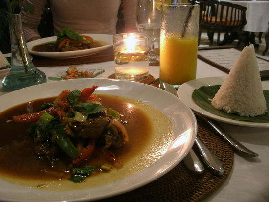Bebek Betutu - in diesem Restaurant, das darauf spezialisiert ist, muss man nicht einen Tag vorher bestellen… BEBEK BENGIL in der Jl Hanoman (nahe des Coco Supermarktes, der im Übrigen Alles aus den Souvenirshops hat und alle Snacks und Lebensmittel zum mindestens halben Preis). Man muss nur die Moneky Forst Road zum Wald runtergehen und dann um die Kurve der Strasse folgen, dann kommt bald darauf auf der rechten Seite der Coco Supermarkt. Zwei Eingänge dahinter ist das Restaurant.