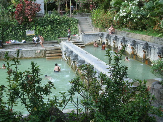Und weiter geht die wilde Fahrt zu den heiligen heißen Quellen, die ein bisschen schwefelig sind.