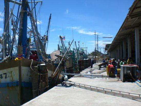 Am Hafen konnten wir beim Entleeren eines Fischtrailers zugucken