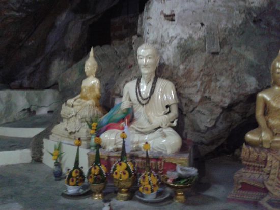 Mit dem TukTuk wieder zurück, am Hotel vorbei, in westlicher Richtung gibt es noch einen Berg mit 3 Höhlen.