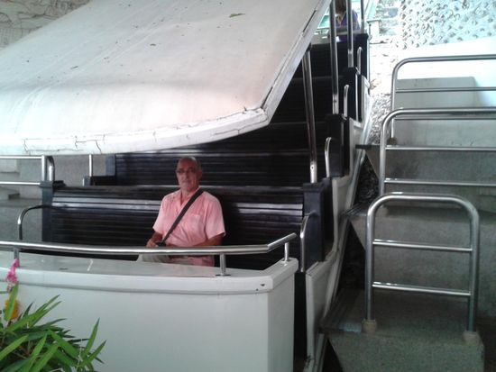 In Ayutthaya wollten sie nur einen Paß sehen, also hatten wir heute auch nur einen mit. Was war? Dieser Beamte wollte beide Pässe sehen, wir also wieder zurück, zweiten Paß geholt und nochmal zum Bahnhof. Aber jetzt sind wir wenigstens auf der sicheren Seite. Und wir konnten eine Info nach Khanom schicken, daß sie uns einen Fahrer zum Bahnhof schicken. Als wir vor 6 Jahren schon mal hier waren, sind wir vom Flughafen Surat Thani gekommen und mit Mini Bus nach Khanom. Aber da der Zug mit Sicherheit wieder Verspätung hat, möchten wir nicht im Dunkeln irgendwo rumstolpern, um Bus und Taxi zu suchen. So kostet es zwar etwas mehr, aber wir müssen uns nicht stressen.