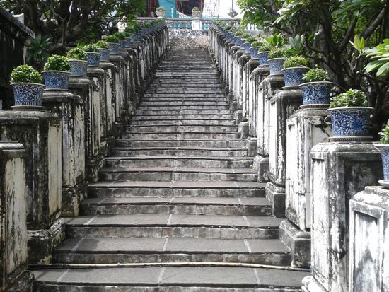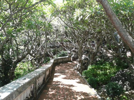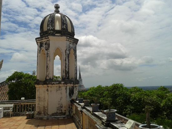 Wir haben den Tuk Tuk Fahrer gebeten, uns am Eingang der Schienenbahn zum Phra Nakhon Khiri-Palast. Dieser liegt auf einem der kleinen, bis etwa 95 m Höhe aufsteigenden Hügel des Khao Wang's.