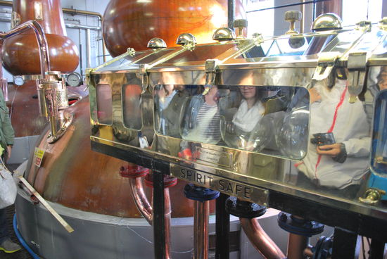 Der erste Stopp findet bereits nach 1-stündiger Fahrt über Autobahn und noch schnurgerader Landstraßen in einer Whisky-Distillerie statt, namens Deanston. Die Besichtigung ist optional, kostet 9 GBP und dauert ca. 30 Minuten. Obwohl ich bereits einmal eine Whiskey-Distillerie besucht habe (Jack Daniel´s in Lynchburg/Tennessee/USA), gehe ich auch diesmal mit. Schließlich handelt es sich hier um Scotch, nicht um Bourbon. Und was ist da nun der Unterschied ? Und wieso ist die Schreibweise unterschiedlich Whisky - Whiskey ? Nun ja, obwohl ich keine Expertin bin, was dieses Getränk angeht (weil ich es gar nicht mag), die Erklärungen: Scotch wird hauptsächlich aus Gerste gemacht (europäisch), Bourbon aus Mais (amerikanisch). Das Wort "Whisky" leitet sich aus dem gälischen Wort für Wasser des Lebens ab, "uisge". Die unterschiedlichen Schreibweisen sind über die Jahrhunderte entstanden, aber heute gilt: In Kanada und Schottland heißt es Whisky, in den USA und Irland Whiskey.