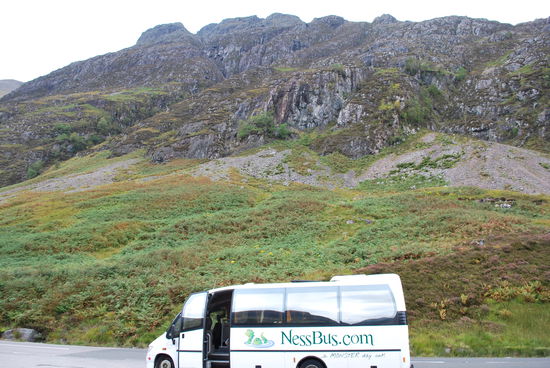 Natürlich wollte ich neben Edinburgh auch etwas vom restlichen Schottland sehen, insbesondere einen Ausflug in die Highlands machen und das legendäre Loch Ness besuchen. Im Vorfeld der Reise habe ich also nach einer solchen Tagestour online gesucht und wurde schnell bei NessBus.com fündig. Die bieten eine Monster-Tagestour von ca. 12 Stunden Dauer an zum Grundpreis von 45 GBP. Man bucht online die Tour, löhnt 10 GBP per Kreditkarte als Kaution, bekommt per email das Ticket und einige Instruktionen: Z.B. die, dass der Ness Bus zwischen 07.00 und 08.00 Uhr morgens die Tour-Teilnehmer an verschiedenen Haltestellen in Edinburgh abholt. Man suche sich einfach die zum Hotel nächstgelegene Haltestelle aus und begebe sich so zeitig dorthin, dass man mindestens 5 Minuten vor der Abholzeit parat steht. Wegen des vollgepackten Tagesplans wird schon bei Buchung darauf explizit hingewiesen, dass man sich während der Tour jeweils mindestens 10 Minuten vor Abfahrtszeit wieder am Bus einzufinden hat. Auf der Tour gibt es dann einige Stopps, kürzere Fotostopps und längere Besichtigungs-Stopps mit optionalen, extra zu bezahlenden Attraktionen. Soweit, so gut.