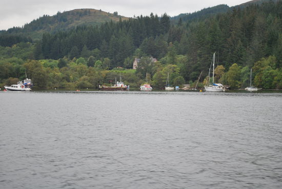 Wir trudeln genau gemäß Zeitplan in Fort Augustus ein, dem Ausgangsort für die Loch Ness-Bootstouren. Hier ist der erste Stopp seit 3 Stunden für Toilette u.ä. Aber wir haben genug Zeit. Jeder kann die Waschräume aufsuchen, noch etwas zu essen/trinken kaufen, bevor es an Bord geht und selbst nach der Bootstour stehen noch planmäßige 30 Minuten zur Verfügung für Verpflegung/Toilette/Shopping/Fotos, whatever. Die Bootstour kostet hier 12 GBP, das Geld dafür hat Dougie bereits an unserem letzten Halt eingesammelt, damit er nur noch telefonisch die Anzahl der Teilnehmer durchgeben muss, die Tickets vor Ort in Fort Augustus am Bus abgeliefert werden und wir keine Sekunde irgendwo Schlange stehen müssen. Perfekt organisiert.
