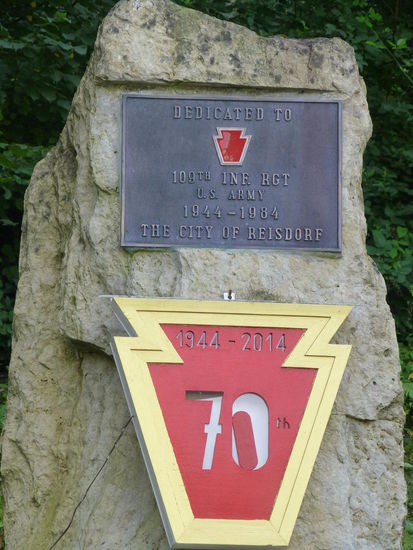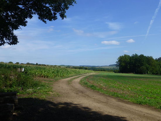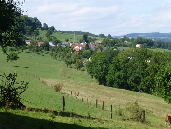 Oben auf dem Hoesdorfer Plateau erwartet uns eine wunderbare Weitsicht über die Höhen von Ardennen und Eifel. Hier fand kurz vor Ende des Zweiten Weltkrieges eine erbitterte Schlacht mit vielen sinnlosen Opfern statt. Eine Gedenktafel sowie ein Rundweg, der "Promenade de souvenir" erinnert an diese schrecklichen Zeiten.