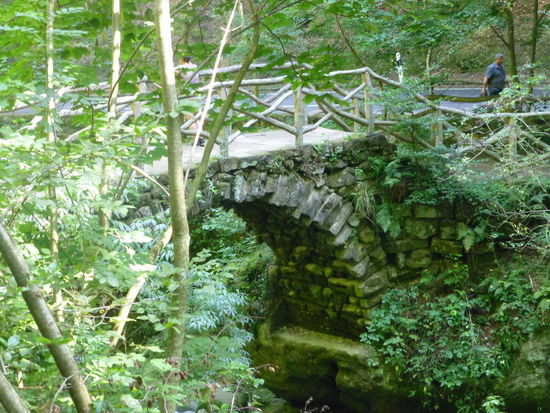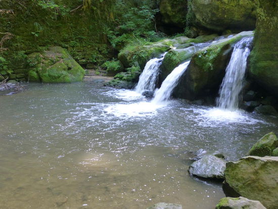 Nach der Schlossbesichtigung fahren wir weiter ins Mullerthal. Es ist DIE Wanderregion Luxemburgs schlechthin und auch der Mullerthal-Trail führt hier entlang. Wir stellen das Auto auf einem der zahlreichen Wanderparkplätze ab und unternehmen einen kleinen Spaziergang an den Schießentümpel. Ein kleiner Wasserfall, der an schönen Tagen zahlreiche Besucher anlockt und der eines der Wahrzeichen des Mullerthales ist. Für uns - die wir andere Wasserfall-Dimensionen gewöhnt sind - ganz nett, aber nicht wirklich aufregend