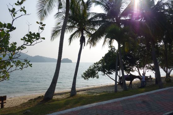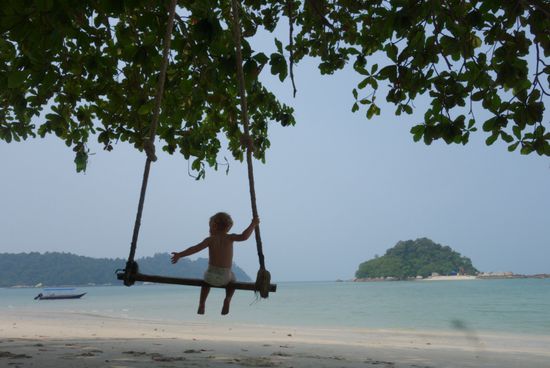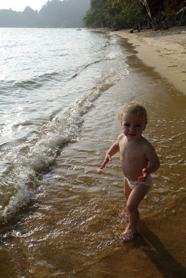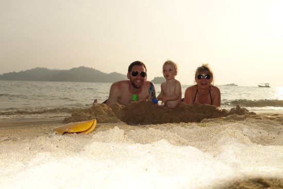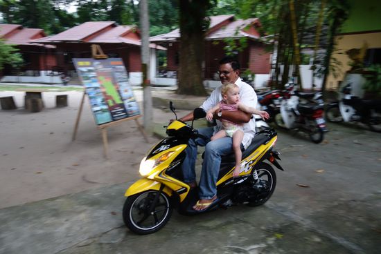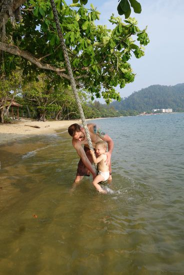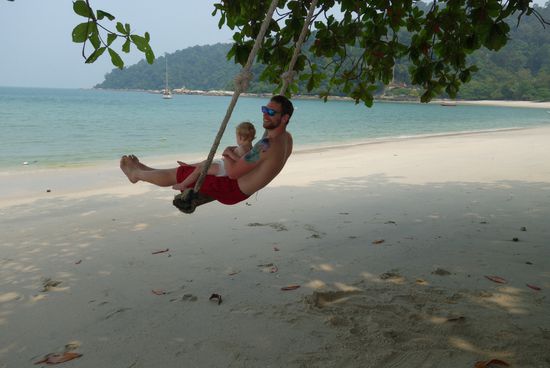 Nachdem wir uns in Ipoh alle gut erholt haben, war es uns nach Meer und wir wagten uns an das Reisemedium "Bus". Dabei hatten wir uns auf das Schlimmste vorbereitet, wurden jedoch von unserer Kleinen wieder einmal positiv überrascht. Eleni zeigte sich als schlafbereit, brav, sitzfreudig und äußerst buskompatibel. Auch wenn der Zustand des Busses im ersten Moment nicht gerade vertrauenswürdig erschien und wir darauf aufmerksam gemacht wurden, dass dieser Bus bestimmt nicht das Ziel erreicht, kamen wir überraschender Weise nach 2h sicher in Lumut an. Mit der Fähre gings auf die Insel Pangkor, wo wir uns, im vielfach gelobte Vikri Beach Resort einquartierten. Die sehr freundiche indische Familie umsorgte uns mit allem was das Herz begehrt. Für uns gabs lecker frisch zubereitetes indisches Curry und auch Eleni wurde jeder kulinarische Wunsch mit einer just-in-time-Lieferung erfüllt (Käse, Wurscht, Mate, Gurke, Mich, Lone...) Nach Martins erfolgreichem Fischfang von 25 Fischen, welche ntürlich dem Resort und somit uns, zu Gute kamen, wurden wir hier umsorgt wie Kiingkäs und Sandra bekam dafür einen Fischcurrykochkurs.
