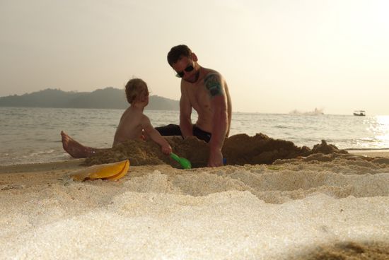Die ursprüngliche Insel an sich ist sehr überschaubar, mit tiefem bergigen Dschungel bedeckt und dient hauptsächlich den Einheimischen als Urlaubsort. Ein perfekter Ort, um im Schatten von Mangrovenbäumen die Seele baumeln zu lassen, im Sand zu spielen und das süße Nichtstun zu genießen. Unser Tagesablauf sah wie folgt aus: Frühstücken, die Augen nach inneren Verletzungen absuchen (daran kann man sich durchaus gewöhnen , Nachmittagssnack, baden, Abendessen, schlafen.
