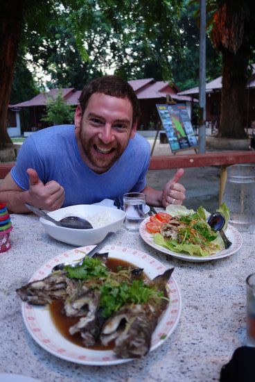 Zu unserer allabendlichen Unterhaltung diente der überaus gesprächsfreudige und lustige Barkeeper Ragu, den Eleni sofort ins Herz schloss. Eine sehr interessante Begegnung waren außerdem unsere syrischen Nachbarn, die uns anfänglich sehr befremdend, wohl eher muslimisch, vorkamen. Doch aufgrund der aktuellen Lage in Europa, war unsere Neugierde doch recht groß und wir nahmen die spontane Einladung zum BBQ, natürlich halal, und Vogelfutter - gesalzen an. Das Gelage endete schließlich nachts um halb 2 und so rollten wir - von Chicken, Nüssen, Knoblauchsoße, Salat, arabisch Coffee, und Shisha gemästet, einen Bungalow weiter in unser Bett. Mit arabischer Musik im Hintergrund, viel Lachen und aufschlussreichen Gesprächen haben wir uns mal wieder, entgegen unserer Erwartungen, sehr amüsiert und eine kulturelle Horizonterweiterung erfahren.