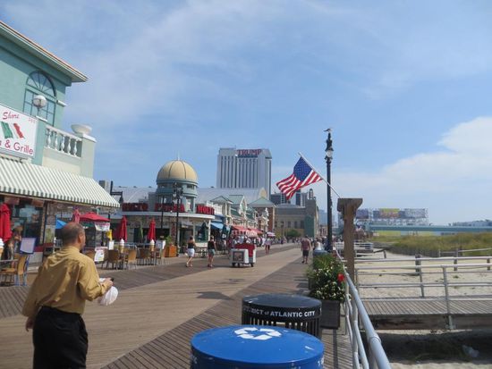 Die Fahrt führte uns durch typisch amerikanisches Vorstadtgebiet, vorbei an riesigen Autohändlern, Trailerparks und Fast-Food-Ketten. Am späten Vormittag kamen wir bei brennender Hitze am Meer an und fanden schnell unser Quality Inn Motel in zweiter Reihe zum Strand. Obwohl wir viel zu früh waren durften wir unser Auto bereits am Motel abstellen und machten uns gleich auf den Weg zum Boardwalk. Diese schöne Strandpromenade ist ca. 7 Km lang, hat zur einen Seite den schönen breiten Strand und zur anderen Bars, Restaurants, Souvenirgeschäfte, Museen und selbstverständlich die Casinos . Natürlich war alles etwas kleiner und weniger Bling-Bling als in Las Vegas, war man einmal in den Themenhotels drin fühlte man sich jedoch direkt an die Westküste versetzt. Leider hatten wir am Morgen die schlechten News bereits in den Nachrichten gehört – aufgrund der schwierigen US-Wirtschaftslage und aufgrund der Tatsache, dass Glücksspiel nun auch in angrenzenden Staaten legalisiert wurde, hatten die Casinohotels in Atlantic City seit einiger Zeit enorme Umsatzeinbußen zu vermelden, einige mussten sogar bereits schließen. Und in diesem Monat würden zwei weitere Hotels seine Türen das letzte Mal öffnen – das Revel in 2 Tagen und das Trump Plaza in 2 Wochen. Die Zukunft der Spielerstadt sah nicht sehr rosig aus, umso mehr freuten wir uns noch einmal hier zu sein und es zu erleben. Wir schlenderten den kompletten Boardwalk entlang und stoppten immer mal wieder am Strand, an einem Stand um etwas zu Trinken oder in den Casinos um zu spielen. Atlantic City gefiel uns wirklich richtig gut, es gab viel zu sehen und zu entdecken, einen richtigen Rummelplatz mit Fahrgeschäften und der breite feine Sandstrand verströmte richtiges Beach-Feeling. Es war viel los und in den Clubs und Bars tanzten schon um diese Uhrzeit die Party-People. Im Ceasars hatten wir direkt Beide richtiges Glück und machten aus unseren jeweils 5 $ Einsatz insgesamt 60 $ . Am Nachmittag kamen wir fix und fertig zurück an unser Hotel und checkten ein. Wir können nicht sagen was mehr brannte - die Sonne oder unsere Füße…es waren 35 Grad Draußen, wir waren heute bereits 21 Kilometer gelaufen – eine Auszeit am Strand hatten wir uns redlich verdient. So entspannten wir uns 1,5 Stunden am Meer bevor wir uns frisch machten und ins Tropicana Casinohotel gingen um das dortige Buffet zu testen. Für 30$ pro Person bekamen wir einen tollen Platz mit Blick auf den Boardwalk und schlugen uns am vielfältigen Buffet die Bäuche voll. Es war wirklich lecker und hat sich absolut gelohnt! Anschließend suchten wir uns 2 ansprechende Automaten und verzockten unsere 60$ Gewinn – schade, aber wir hatten großen Spaß dabei . Unser Fazit zu Atlantic City fällt absolut positiv aus – natürlich ist es kein Las Vegas, aber es ist durchaus einen Besuch wert und jeder kann hier ein wirklich lustiges und abwechslungsreiches Wochenende verbringen. Wir wären gern noch etwas länger geblieben, auch die Miss America Wahlen in 2 Wochen wären sicher spannend gewesen.