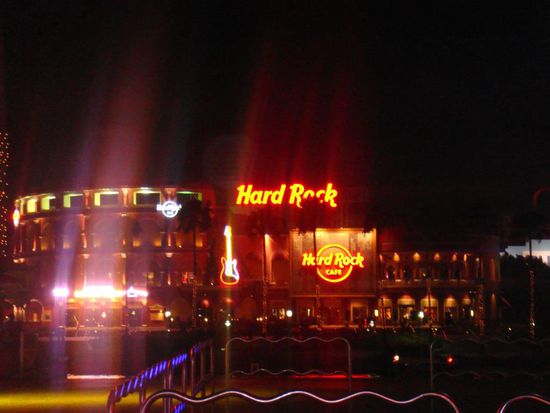 Am frühen Nachmittag deckten wir uns bei Walmart mit Keksen und Getränken für die Fahrt ein und traten dann die 3,5-stündige Fahrt zurück nach Orlando an. Dort checkten wir im Hyatt Place am International Drive ein, machten uns frisch und zogen gleich los auf den Universalwalk. Im ersten Moment war es die totale Reizüberflutung, nach mehreren Tagen in denen es nur weißen Sand und blaues Meer gab, glitzerte und blinkte es hier in bunten Neonfarben wie in Las Vegas. Auf den zweiten Blick waren wir dann doch etwas enttäuscht, den Universalwalk hatten wir uns doch um einiges größer vorgestellt. Es gab ein paar Bars & Restaurants, darunter auch das angeblich weltweit größte Hard Rock Café, aber wie eine lange Partymeile darf man sich das nicht vorstellen. Im Nascar Restaurant bestellten wir Burger & Wraps, die allerdings nicht sonderlich gut schmeckten und recht teuer waren. So schlenderten wir nach dem Essen wieder zurück an unser Hotel und legten uns schlafen.